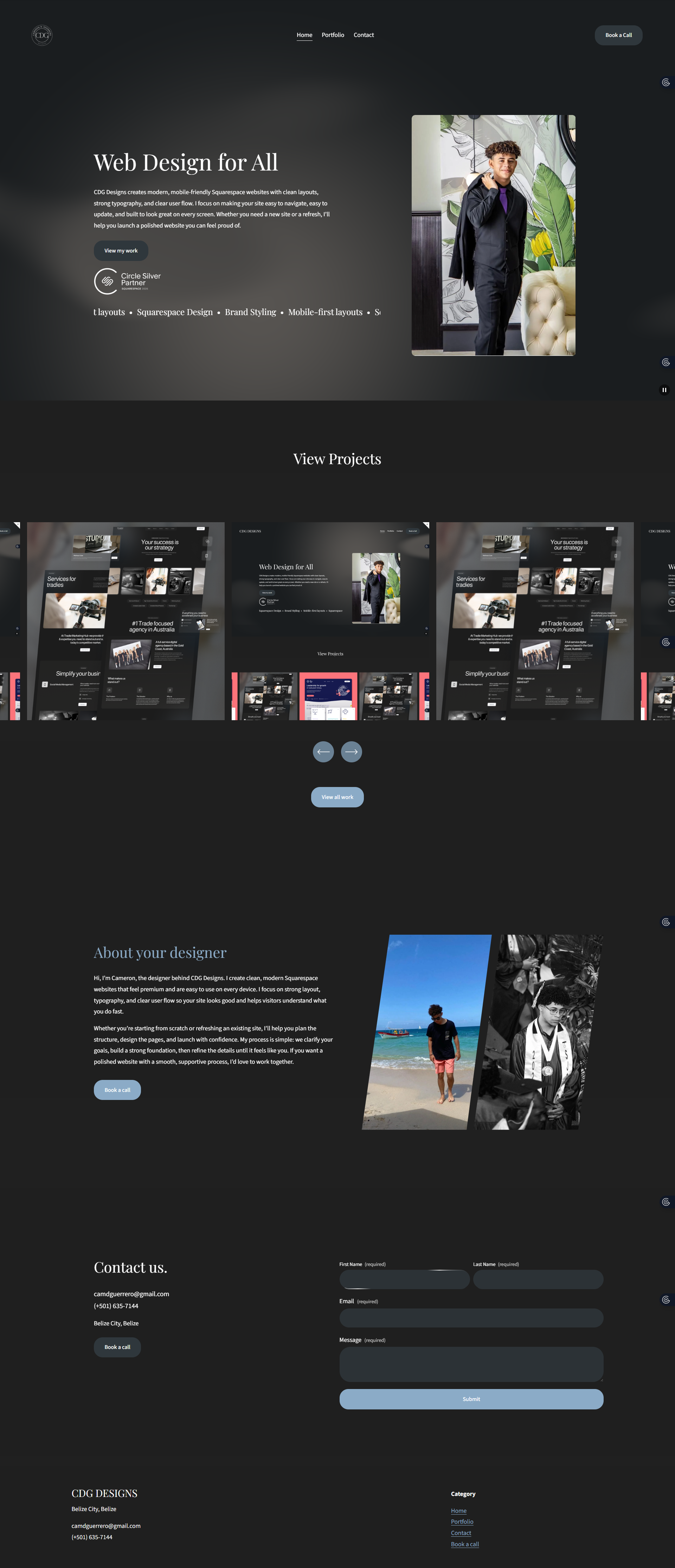 CDG Designs is my own personal brand and portfolio website, built as a self-initiated project to represent my web design services. I created this very site to solve my own need for a professional online presence that clearly explains what I do, shows my work in one place, and makes it easy for potential clients to contact me or book a call. The site was designed and developed in Squarespace with a clean, mobile-first layout, consistent typography, and a simple flow from value proposition to projects to about and contact. To keep it practical and conversion-focused, I added a project showcase for fast browsing, short supporting copy for clarity, and clear calls-to-action, along with a streamlined contact form so visitors can reach out with minimal friction.